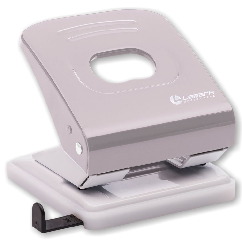 Полностью металлический дырокол Lamark серии Metallic на 2 отверстия диаметром 5,5 мм оснащен линейкой деления на форматы и пластиковым поддоном-основанием для сбора конфетти. Классический дизайн. Усиленные пружины и ножи. Расстояние между отверстиями 80 мм. Мощность пробивания до 30 листов. Цвет серый. Поставляется в цветной картонной коробке.