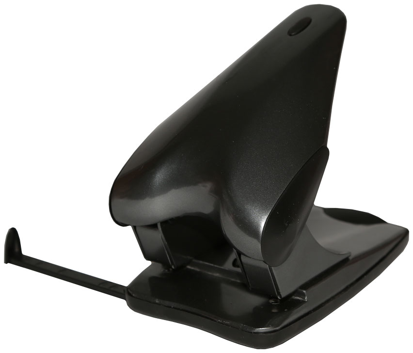 Аксессуар сделан из прочного металла с прорезиненными вставками. Пробивная способность - шестьдесят листов, по два отверстия круглой формы диаметром пять миллиметров. Оснащен съемным пластиковым контейнером для сбора конфетти. В модели также предусмотрена выдвижная линейка, на которой нанесены деления разных форматов, что предотвратит неправильные проколы. Дизайн очень стильный - плавные линии, черное цветовое оформление.