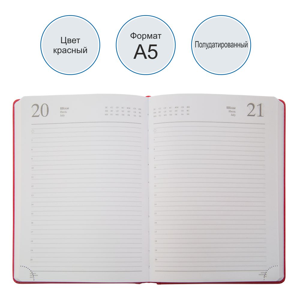 формата А5 в твердой обложке из экокожи  -  идеальный помощник в деле планирования рабочего времени для тех, кто ценит рационализм и функциональность.