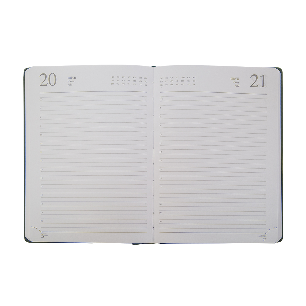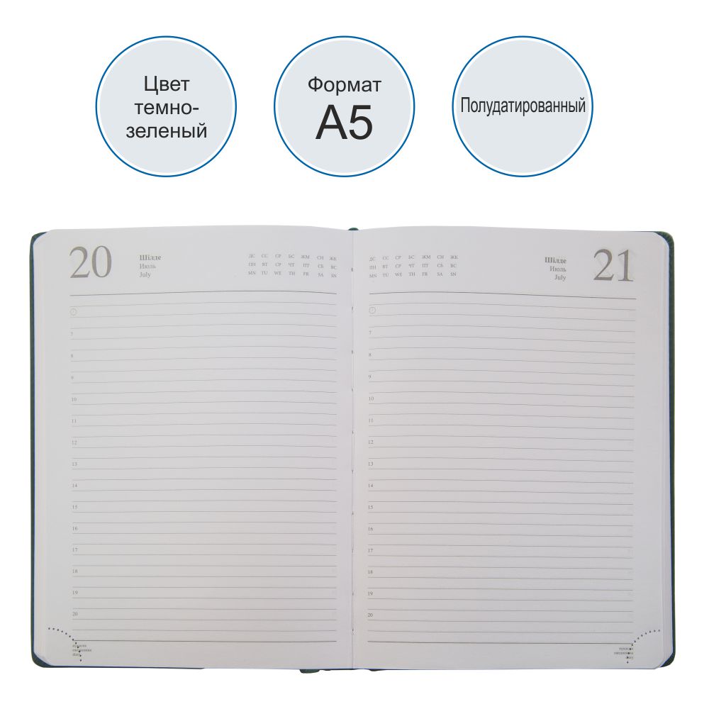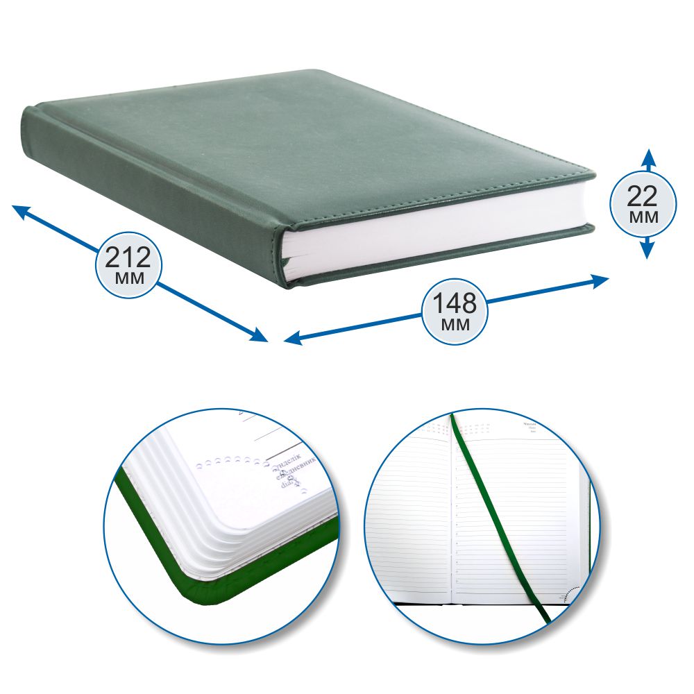 формата А5 в твердой обложке из экокожи  -  идеальный помощник в деле планирования рабочего времени для тех, кто ценит рационализм и функциональность.