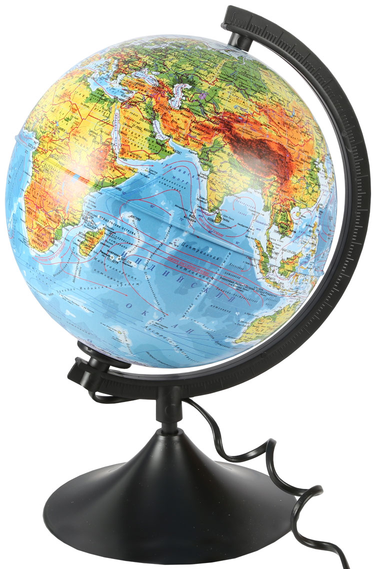 Изюминка данной модели - это дополнительная функция подсветки. Нанесенные обозначения легко рассмотреть даже в темное время суток. Внутри находится лампа освещения, которая при необходимости может быть заменена, для чего понадобиться просто убрать ободок с глобуса.