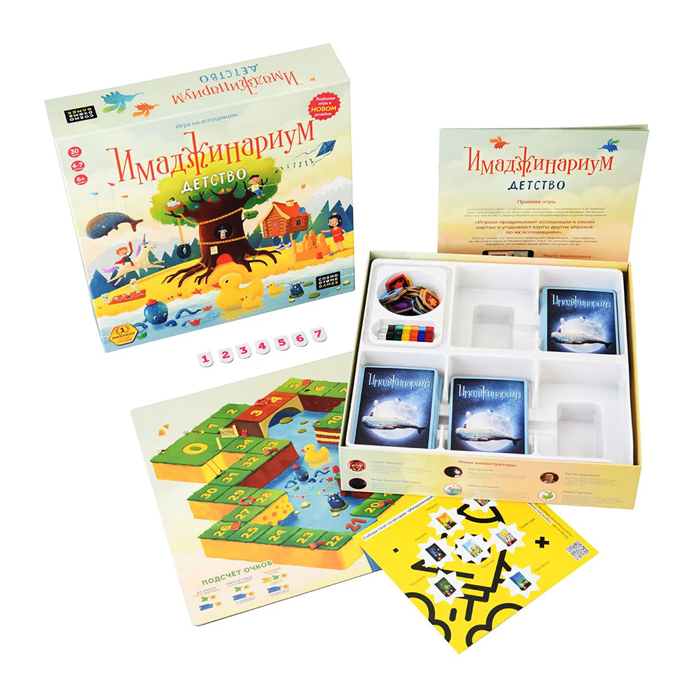 «Имаджинариум Детство» разработано особое игровое поле со специальными клетками. Задания из базовой версии для детей слишком сложны — поэтому здесь игрокам предстоит подбирать ассоциации со сказочными персонажами или начинать фразу с «давным-давно». А еще есть чудесная клетка, с которой игрок не ходит назад, даже если 6 лет ему уже исполнилось. Так же открыто разрешается нарушать правила (да-да, об этом в них же и сказано): можно загадывать ассоциации с мультфильмами, рассказывать сказки или даже объединяться в команды и управлять слоном вдвоем или втроем. Словом — в этой игре есть все, чтобы детям было комфортно. Качество «Имаджинариума Детство» на высоте. Каждая деталь игры, начиная с карточек и заканчивая фишками, сделана на совесть — вы оцените, а дети и вовсе будут в восторге!