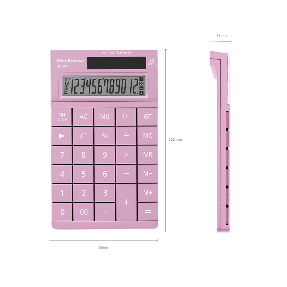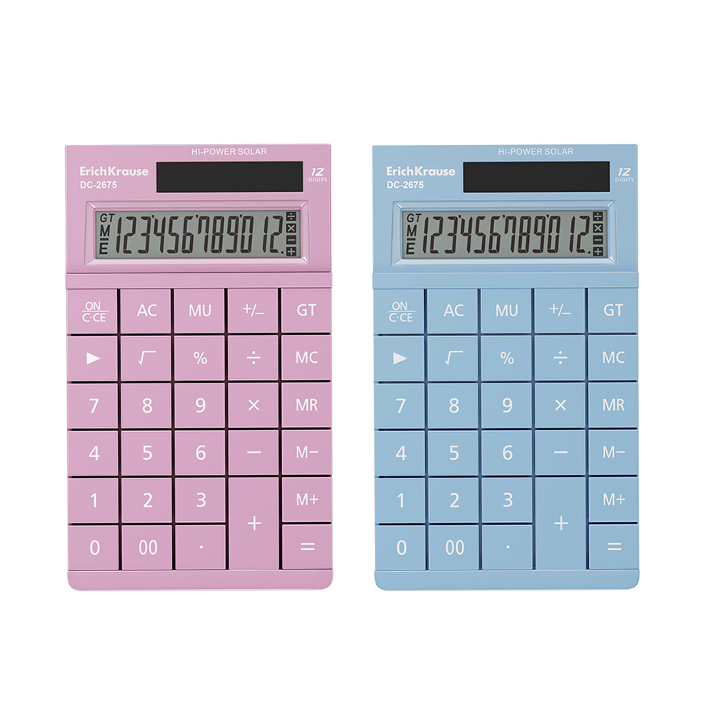 Калькулятор настольный «DC-2675 Manga» от брендаErichKrause, корпус изготовлен из пластика с 12-разрядным ЖК – дисплеем. Имеет одноуровневую память. Оптимальный набор вычислительных функций позволяет совершать основные математические операции, рассчитывать проценты, наценку, извлекать квадратный корень, суммировать произведенные операции и запоминать промежуточный результат. Удобная клавиатура снабжена кнопками двойного нуля и удаления последней отображаемой цифры. Цвет: ассорти