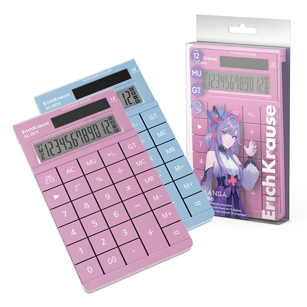 Калькулятор DC-2675 Manga от ErichKrause — это яркое и стильное устройство, которое сочетает в себе удобство в использовании и привлекательный дизайн. С экраном, поддерживающим 12 разрядов, он идеально подходит для выполнения различных расчетов, от базовых до более сложных арифметических операций.