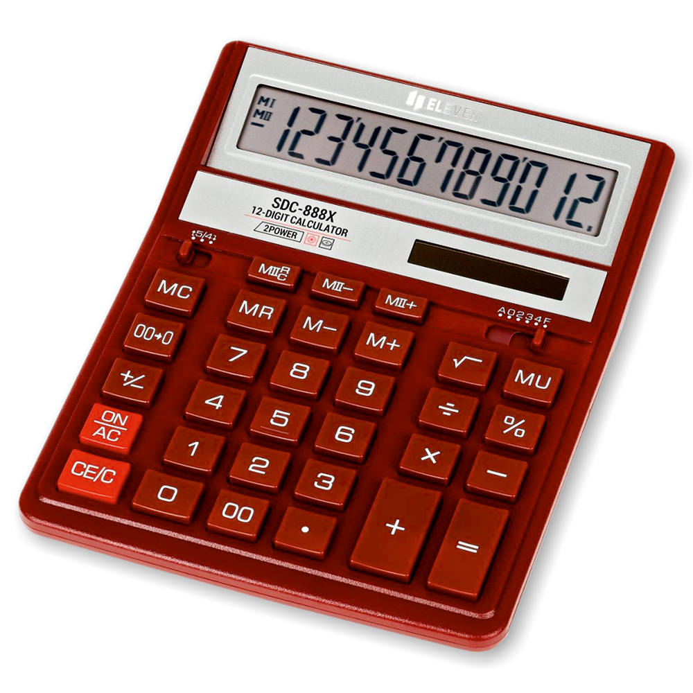Калькулятор - 12раз. "Eleven" SDC-888XRD красный (2 пит.. 2 пам.. 158 x 203 x 31 мм) (Eleven)