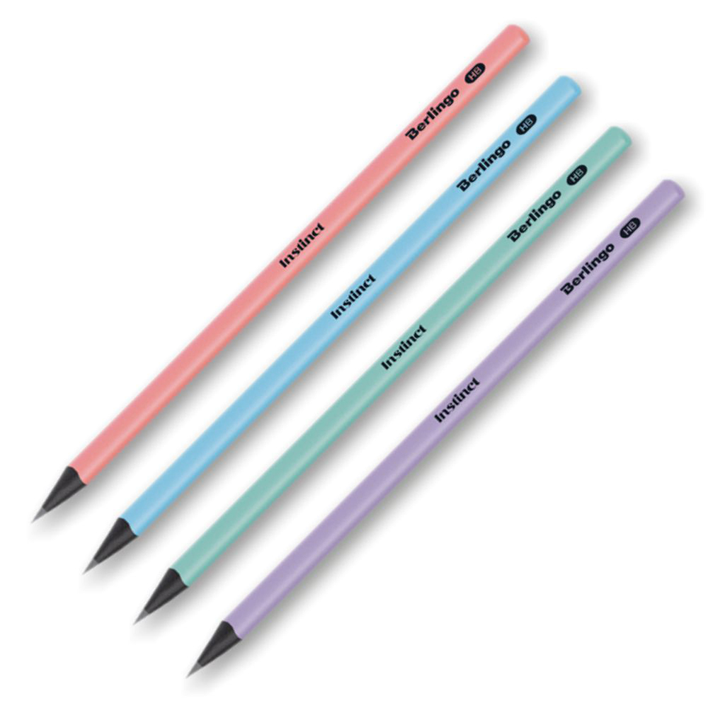 Карандаш чернографитный ударопрочный "Instinct" от бренда Berlingo из черного дерева, с заточкой. Нежные пастельные цвета ассорти: лавандовый, мятный, аквамариновый, фламинго. Матовое покрытие. Не ломается при падении. Закругленный, обработанный в цвет корпуса срез. Безопасен для детей. Подходит для черчения и рисования. Диаметр грифеля 2,2 мм, твердость HB, трехгранная форма, штрих-код на корпусе.