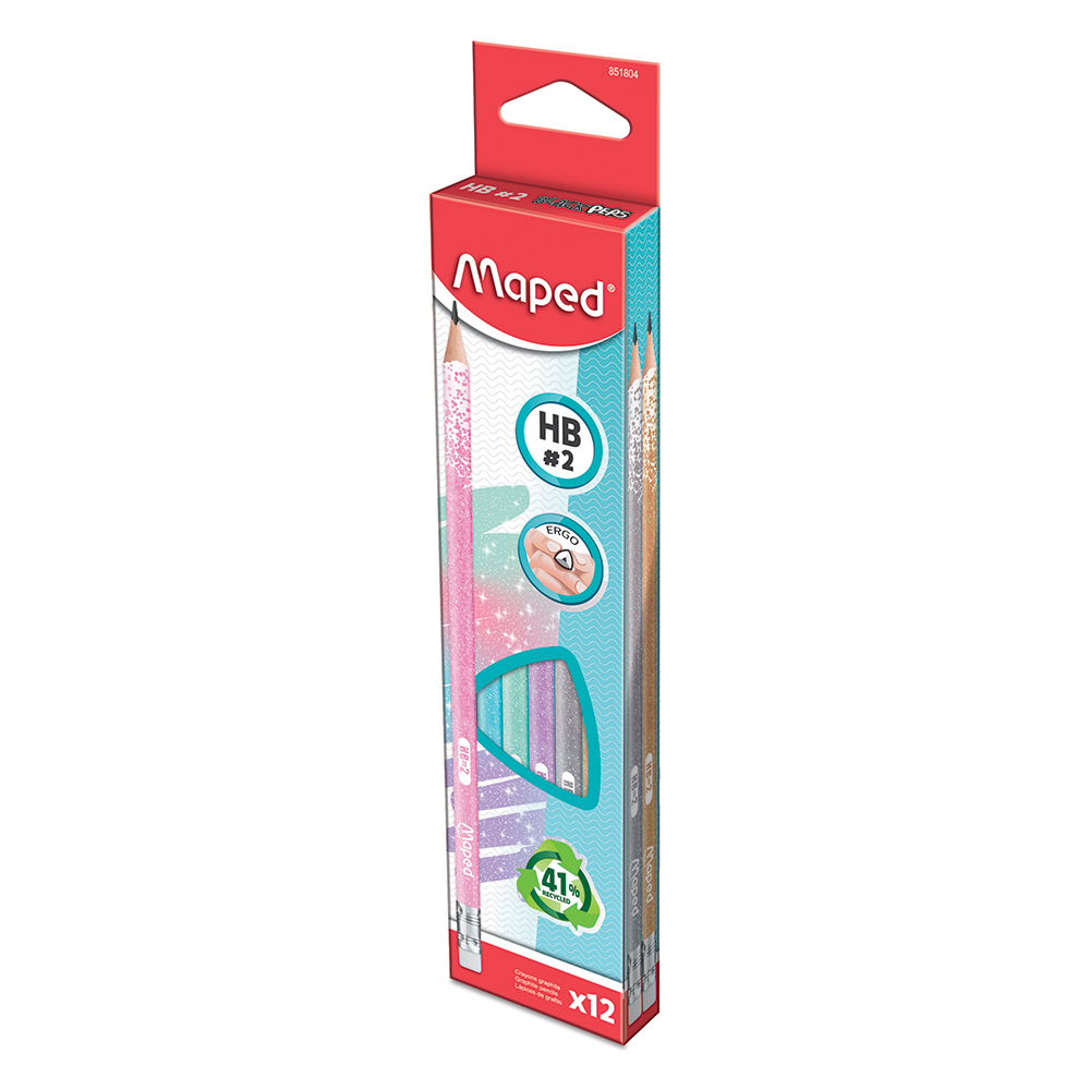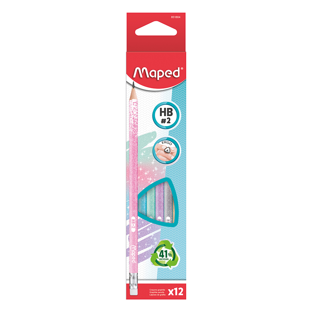 Карандаш чернографитный с ластиком - HB (твердо-мягкие) "Glitter" от бренда Maped предназначен для создания рисунков, эскизов, черчения. Яркий карандаш незаменимый канцелярский помощник, не оставляет следов, легко стирается небольшим белым ластиком. Ластик в верхней части карандаша - удобное дополнение. Качественный пишущий грифель карандаша не крошится, вставлен в корпус из лакированного дерева, которая легко затачивается. Трехгранная форма карандаша очень эргономична, гарантирует правильный захват, комфорт при использовании и снижает усталость кисти и пальцев. Карандаш предварительно заточен.