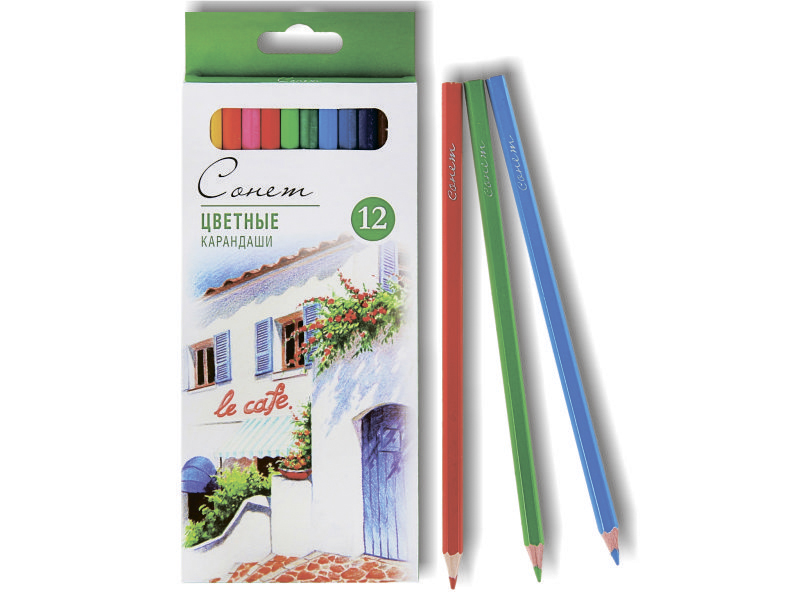 Карандаши художественные в наборе цветные - 12цв. "Сонет" (Н.П.)