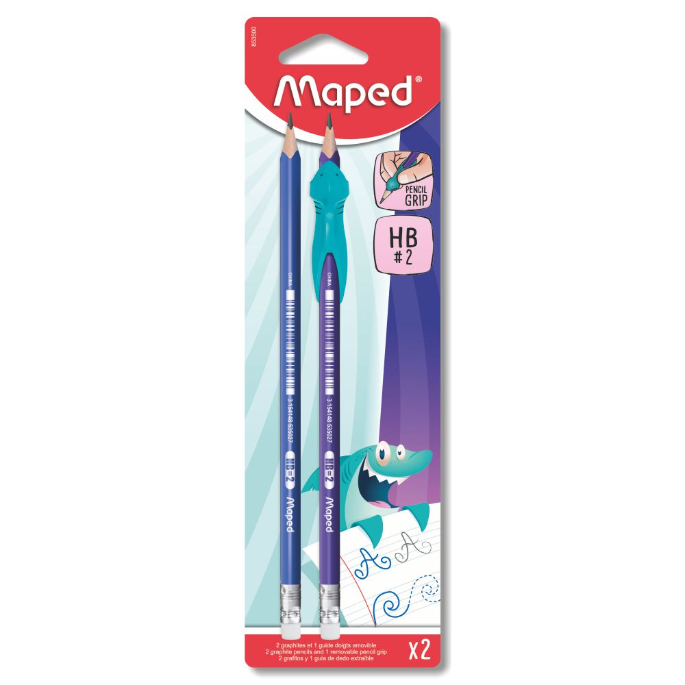 Карандаши в наборе с ластиком - 2 шт. HB + насадка "KIDY LEARN" в блистере (Maped)