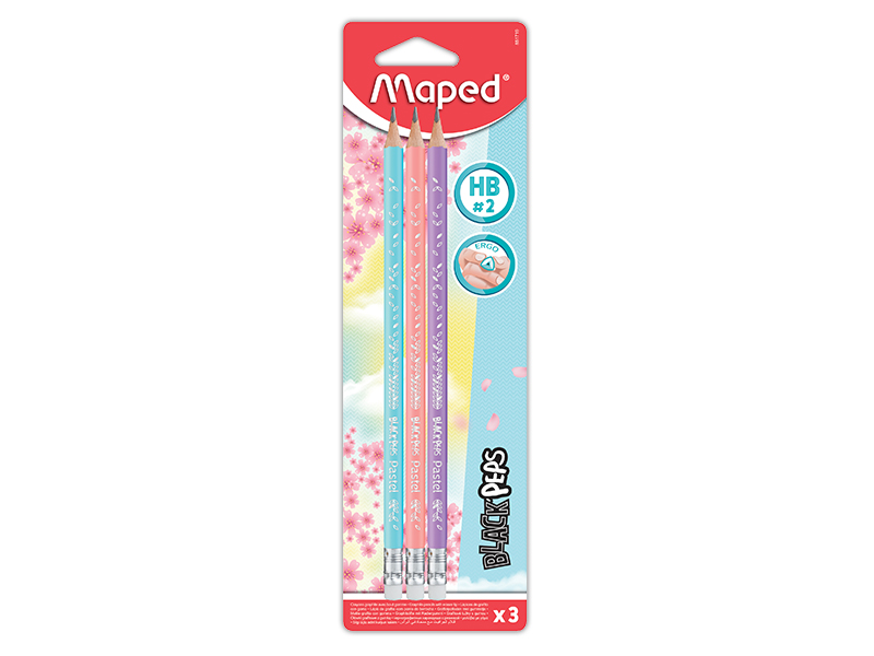 Чернографитные карандаши «Black'Peps Pastel» от Maped – это высококачественные карандаши, сделанные из американской липы. Треугольные карандаши имеют эргономичную форму и, таким образом, поддерживают захват тремя пальцами, не вызывают утомления и идеально ложатся в руку. Стержень имеет прочность HB. Набор содержит 3 карандаша с ластиком, в декорированном корпусе пастельных тонов (мята, коралл, лаванда).