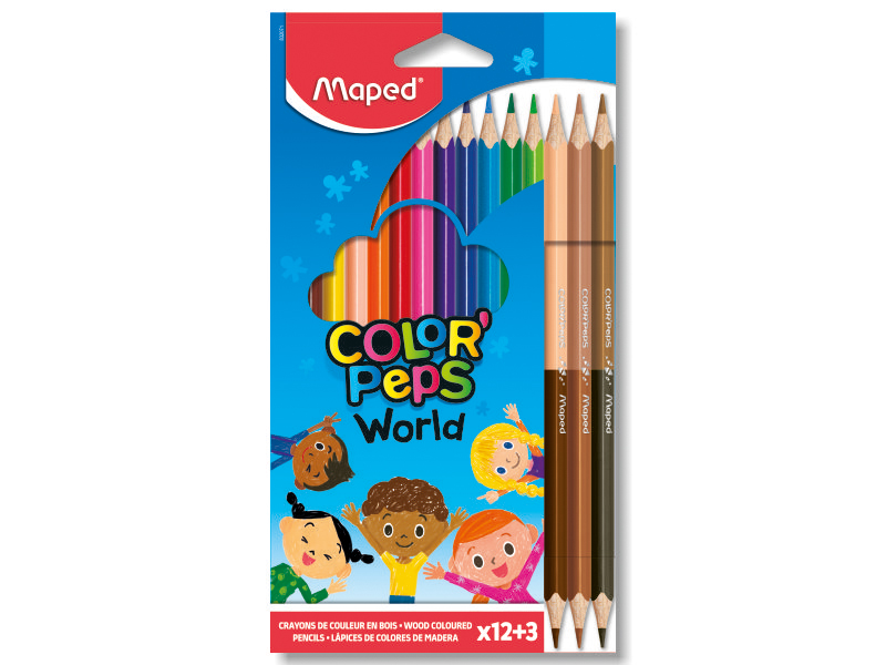 Карандаши в наборе цветные - 12цв. + 3 DUO цвета кожи "Color'peps World" (Maped)