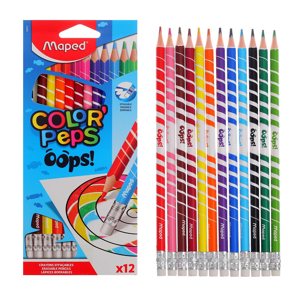 Карандаши в наборе цветные - 12цв. "Color'peps Oops" с ластиком (Maped)