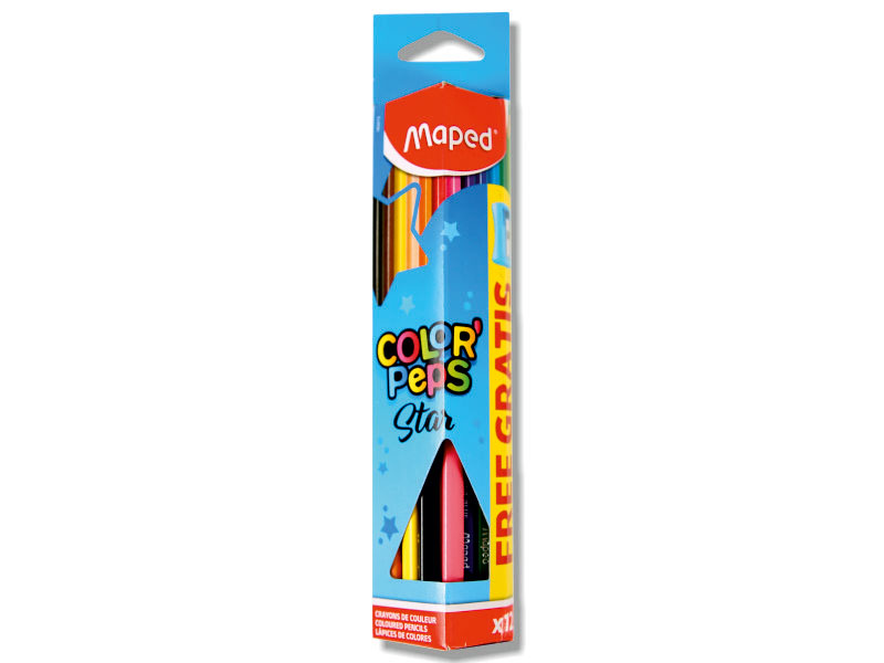 Карандаши в наборе цветные - 12цв. "Color'peps Star Triangular"+ точилка (Maped)