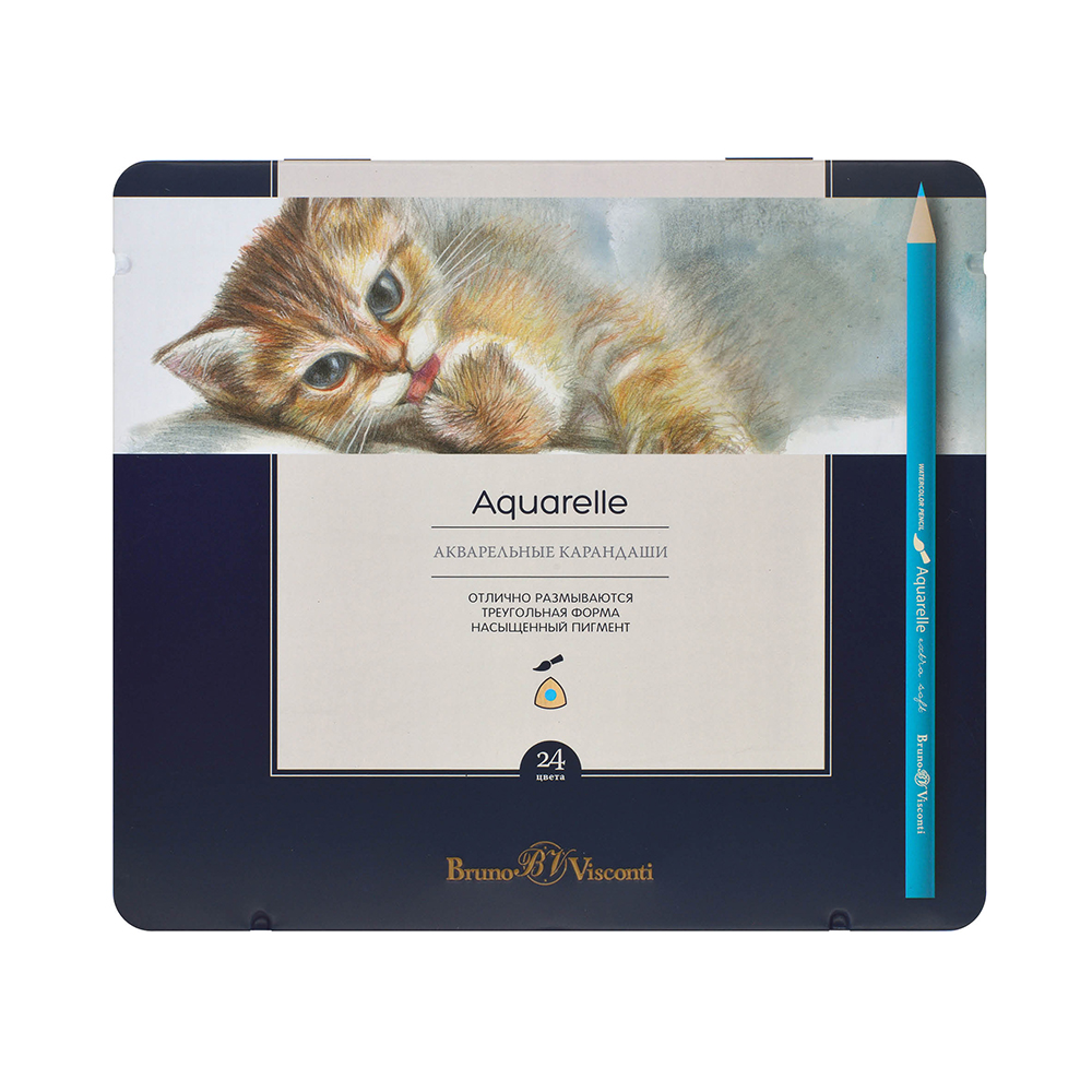 Карандаши в наборе цветные - 24цв. "Aquarelle" в металлической тубе (Bruno Visconti)