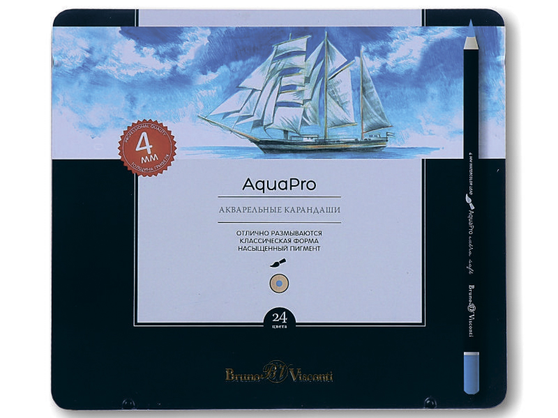 Карандаши в наборе цветные - 24цв. "AquaPro" в металлической упаковке (Bruno Visconti)