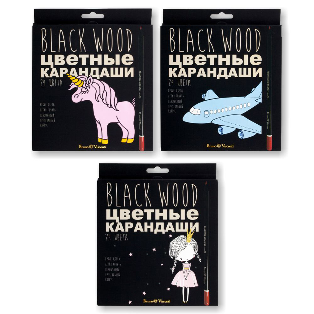 Карандаши в наборе цветные - 24цв. "BlackWoodColor" (Bruno Visconti)