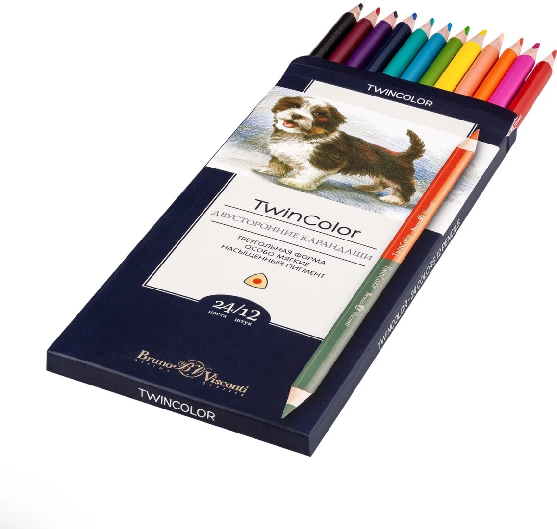 Карандаши цветные в наборе – 24 цвета "TWINCOLOR" двухсторонние (Bruno Visconti).