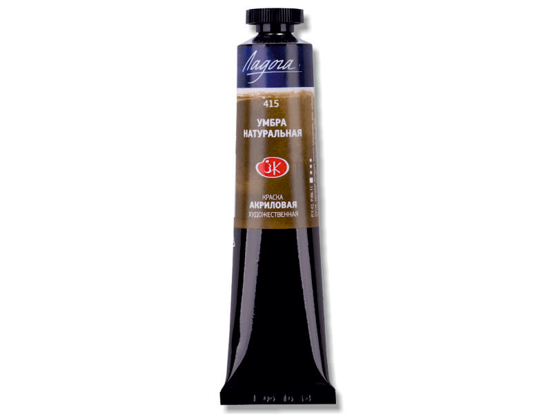Краска акриловая "Ладога" от торговой марки  "Невская палитра" подходит, как для художественных, так и для декоративных работ. Их можно применять для нанесения на холст, картон, бумагу, а также металлические, деревянные, кожаные поверхности. Художники отмечают хорошую укрывистость, насыщенность тона. При работе с акрилом стоит учитывать, что краска темнеет после нанесения. Туба - 46 мл. Цвет:  умбра