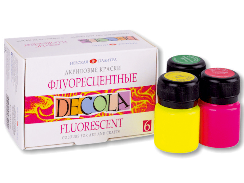 Краска акриловая флуоресцентная в наборе - 6цв. 20мл. "Decola"(Н.П.)