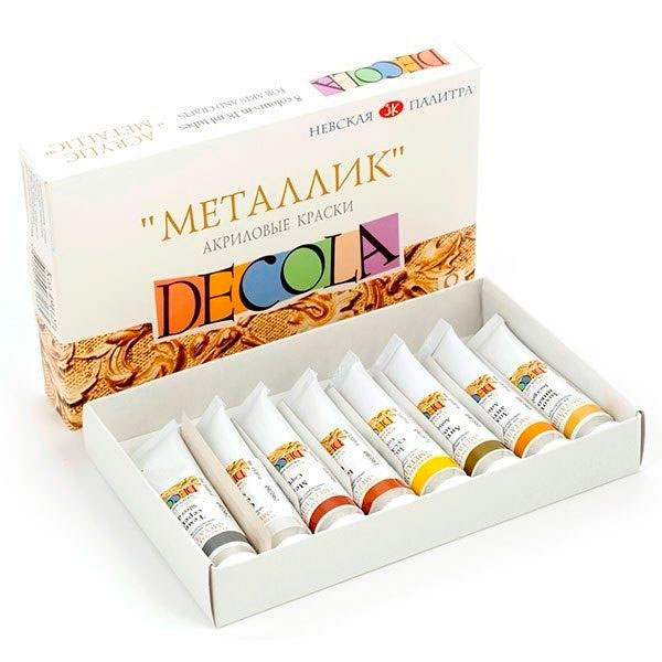 Краска акриловая художественная в наборе - 8цв. 18мл. "Decola" металлик (Н.П.)