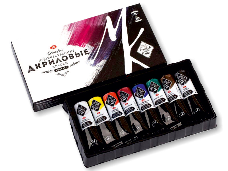 Краска акриловая художественная в наборе - 8цв. 18мл. "МК" (Н.П.)