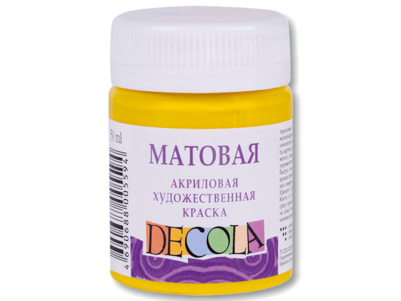 Краска акриловая матовая - 50мл. желтая светлая "Decola" (Н.П.)