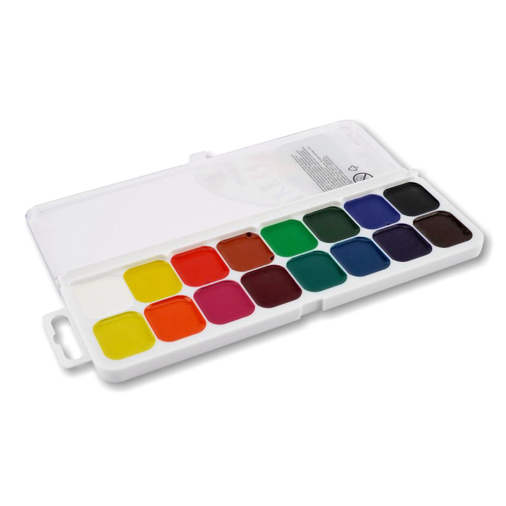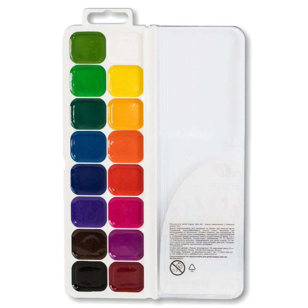 Краски акварельные выпускаются в пластиковой упаковке с прозрачной крышкой. Кисть не входит в комплектацию, что дает прекрасную возможность подобрать этот аксессуар самостоятельно. У нас представлен широкий ассортимент кистей - Вы можете выбрать любую.