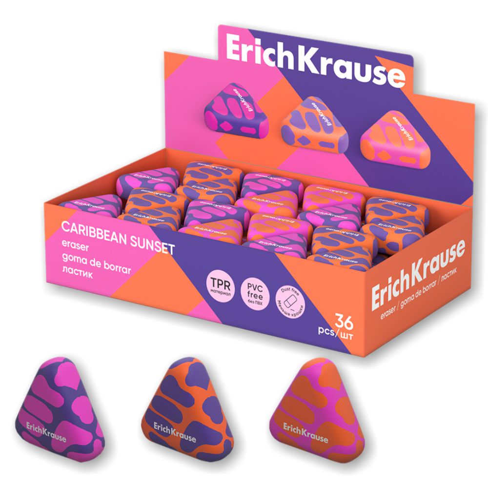 Ластик "Caribbean sunset" от бренда ErichKrause представляет собой треугольную форму, выполненную из современной, экологически чистой и гипоаллергенной термопластичной резины. Отличается минимальным образованием крошек. Ластик так же популярен и неотъемлем для изобразительного искусства, как простой карандаш или ручка. Без этого предмета невозможно представить полностью укомплектованный пенал школьника, художника, архитектора или инженера. Размер 28 х 26 х 10 мм.