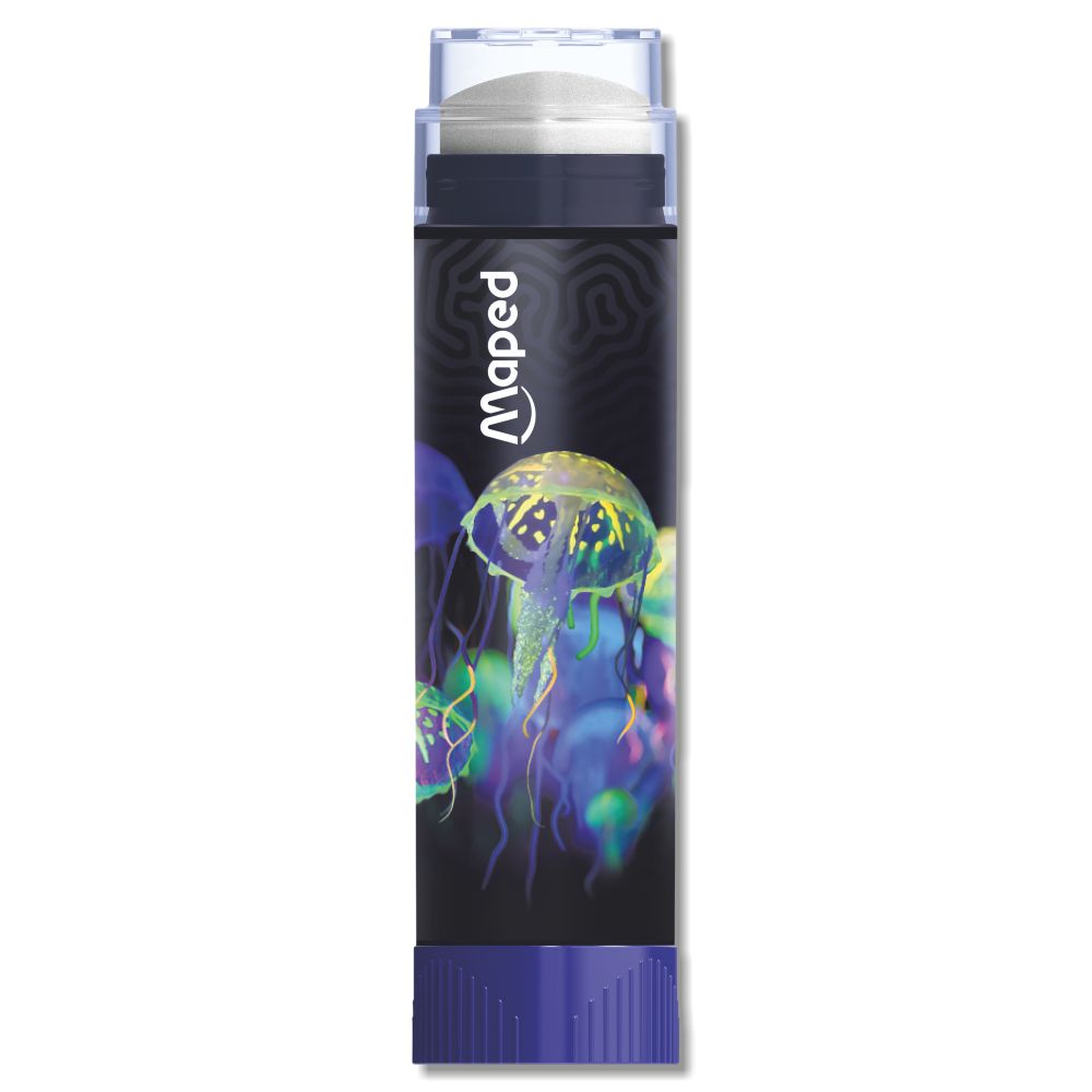 Ластик «Deep Sea Paradise» в тубе представлен брендом Maped. Ластик так же популярен и неотъемлем для изобразительного искусства, как простой карандаш или ручка. Без этого предмета невозможно представить полностью укомплектованный пенал школьника, художника, архитектора или инженера. Ластик необходим везде: в школе, дома и на работе. Ластик имеет механизм, аналогичный клеевому карандашу, что делает его удобным и стильным в использовании. Он имеет компактную форму, удобную для хранения в пенале, и декорированный пластиковый футляр. Прозрачный колпачок защищает ластик от загрязнений и деформации.