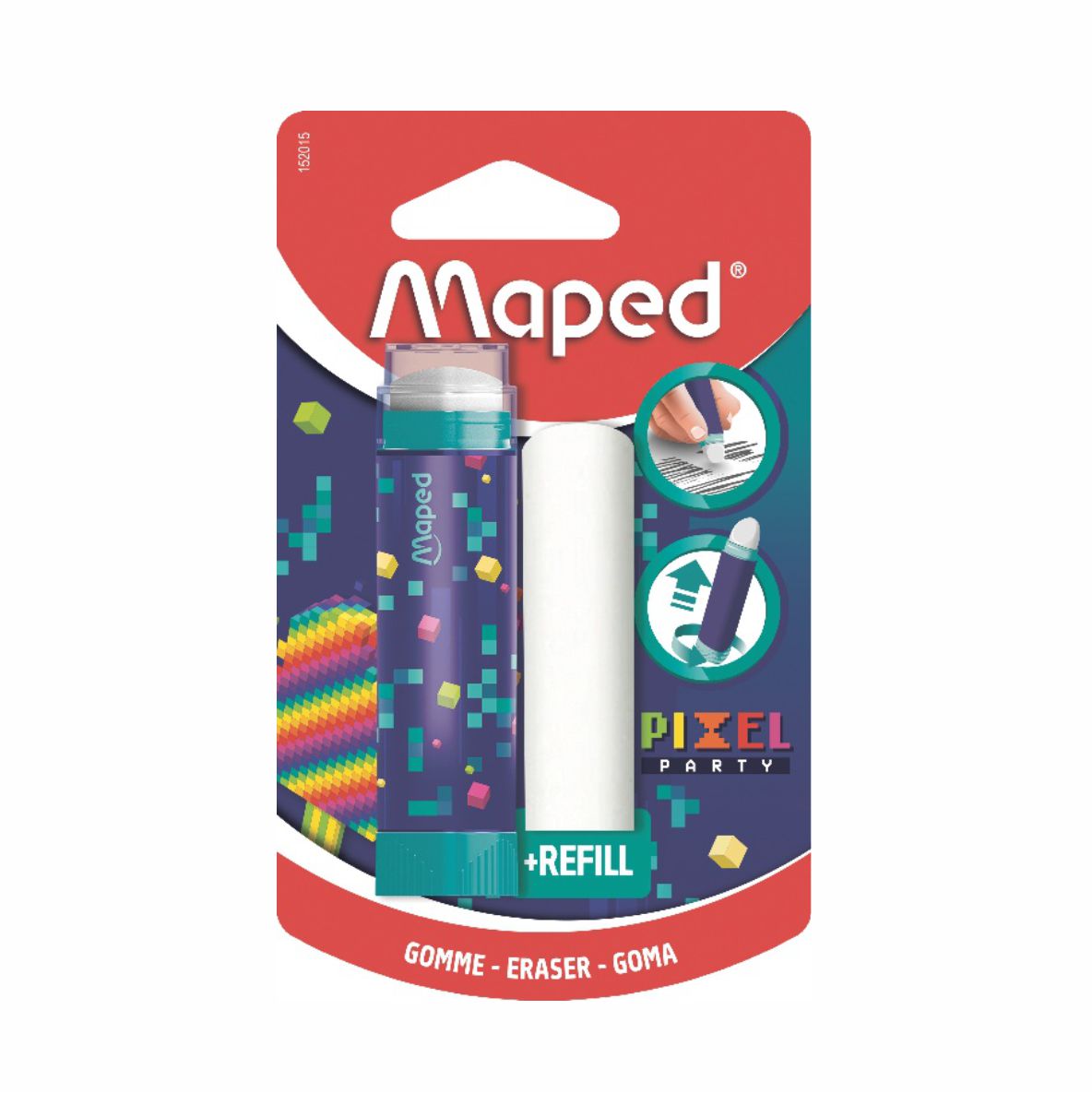 Ластик-карандаш "Pixel Party" выдвижной в блистере + доп. ластик (Maped)