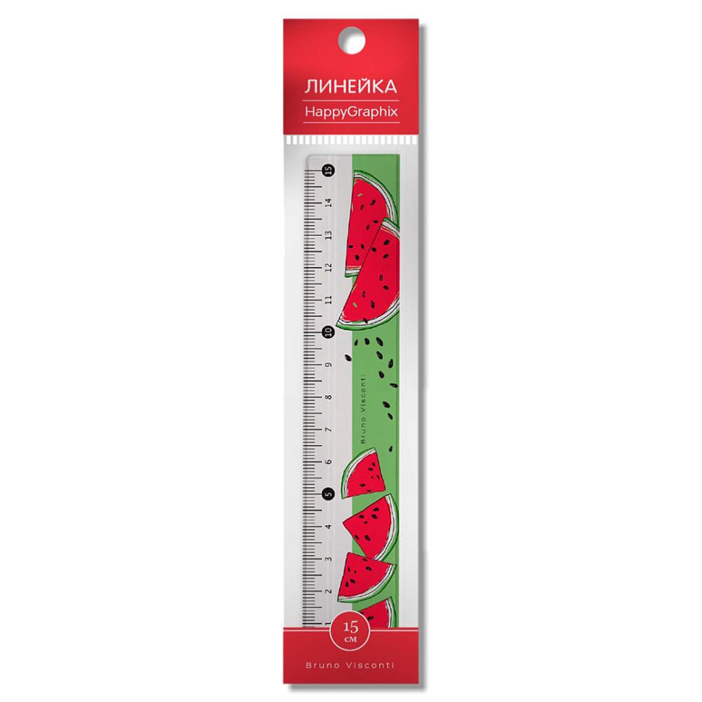 Линейка пластиковая - 15см. "HappyGraphix. Fresh & fruity. Арбуз" (Альт)