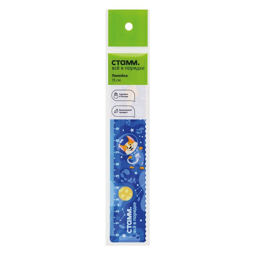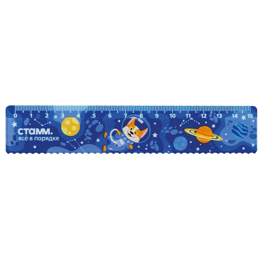 Линейка пластиковая - 15см. "Космос" с волнистым краем (Стамм)