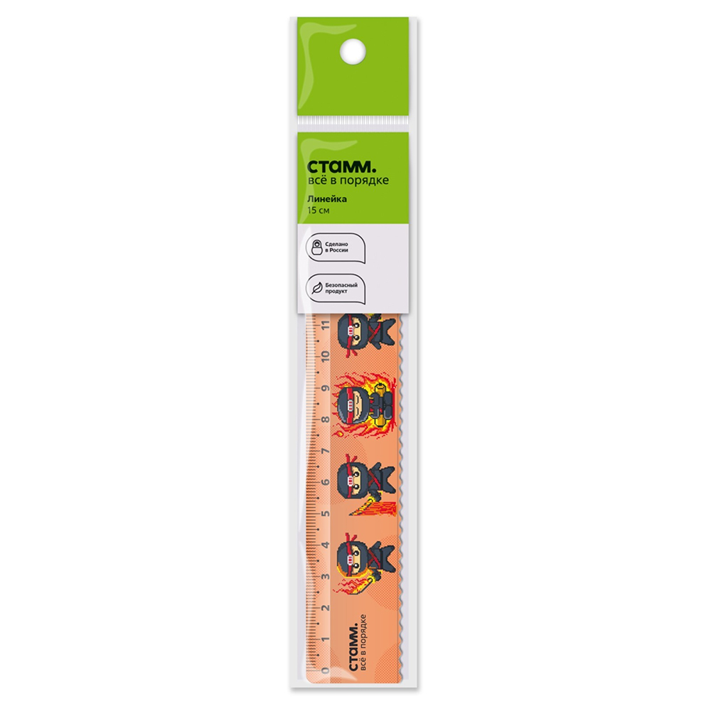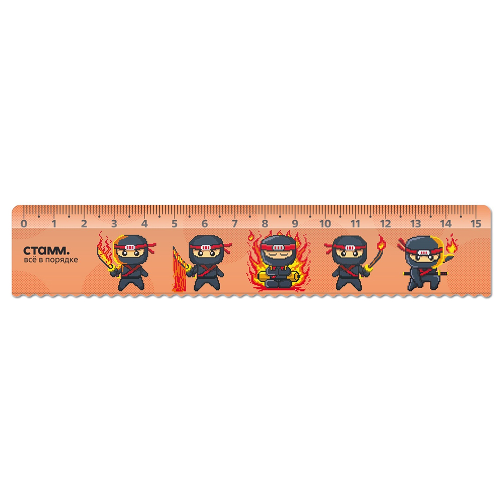 Линейка пластиковая - 15см. "Ниндзя" с волнистым краем (Стамм)