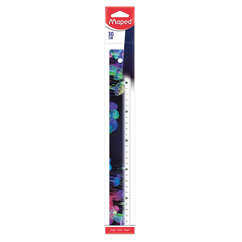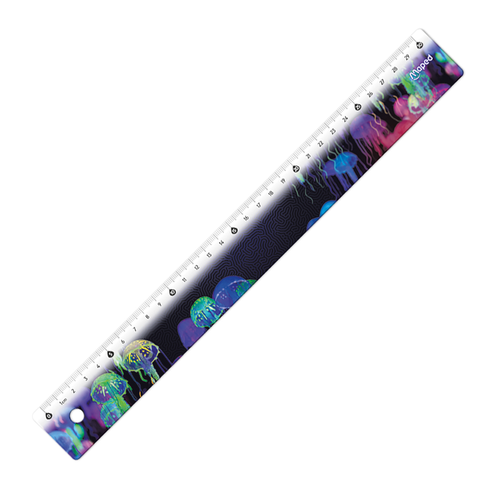 Линейка пластиковая «DeepSea Paradise» от бренда Maped длиной 30 см выполнена из прочного ударостойкого пластика. Обладает перманентной градуировкой с четкими делениями, сохраняющимися до конца срока службы изделия, и усиленным выделением через каждые 5 см. Трендовый прозрачный дизайн с медузами и безопасные закругленные углы делают её отличным выбором для школьников и студентов.