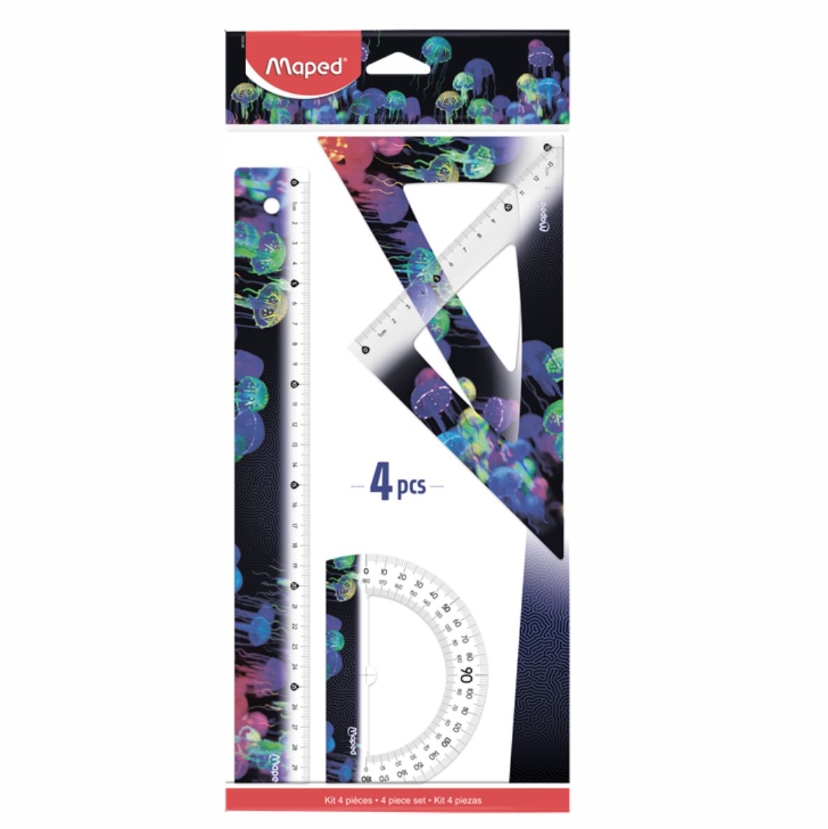 Набор чертёжных инструментов из 4 предметов «Deep Sea Paradise» 30 см от бренда Maped — удобный и яркий комплект для учебы и творчества.