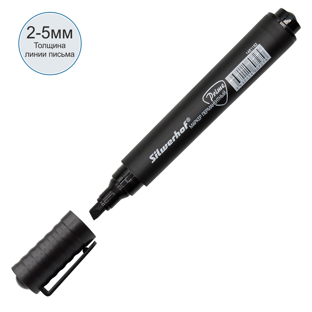 Маркер перманентный - чёрный скошенный 2-5мм "Prime" (Silwerhof)