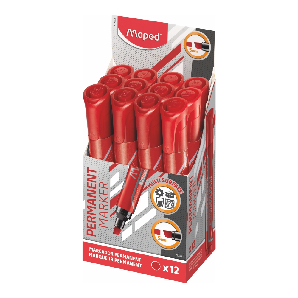 Маркер перманентный - красный скошенный 5мм. "JUMBO CHISEL TIP" (Maped)