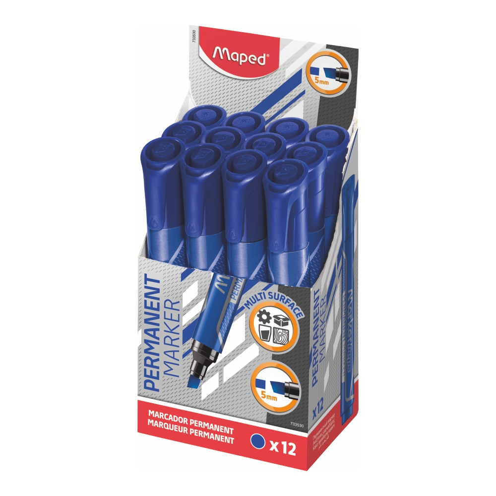 Маркер перманентный - синий скошенный 5мм."JUMBO CHISEL TIP" (Maped)
