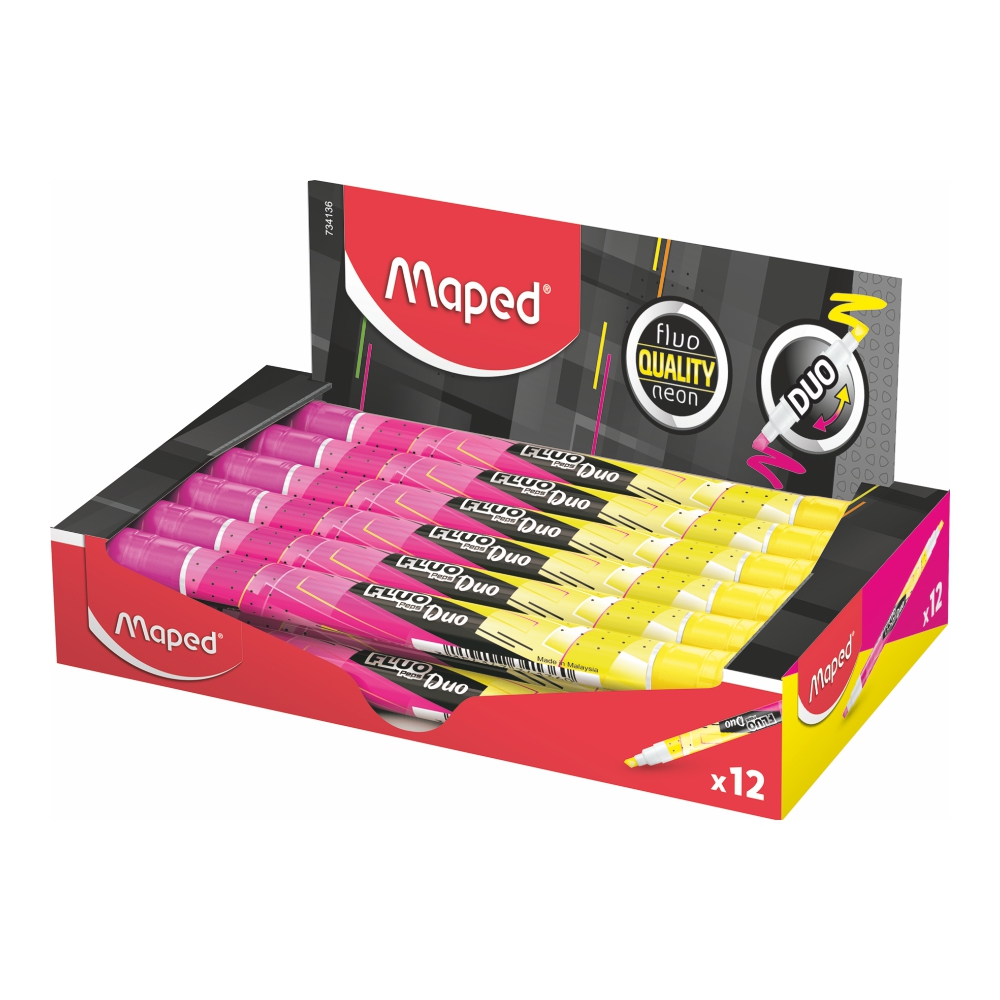 Перманентный маркер «FLUO DUO» от бренда Maped в формате с двойным наконечником.
