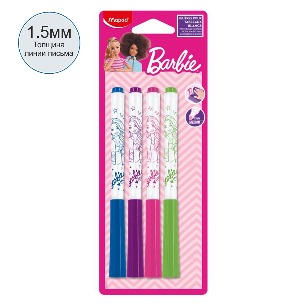 Маркеры д/доски в наборе - 4цв. "Barbie" (Maped)