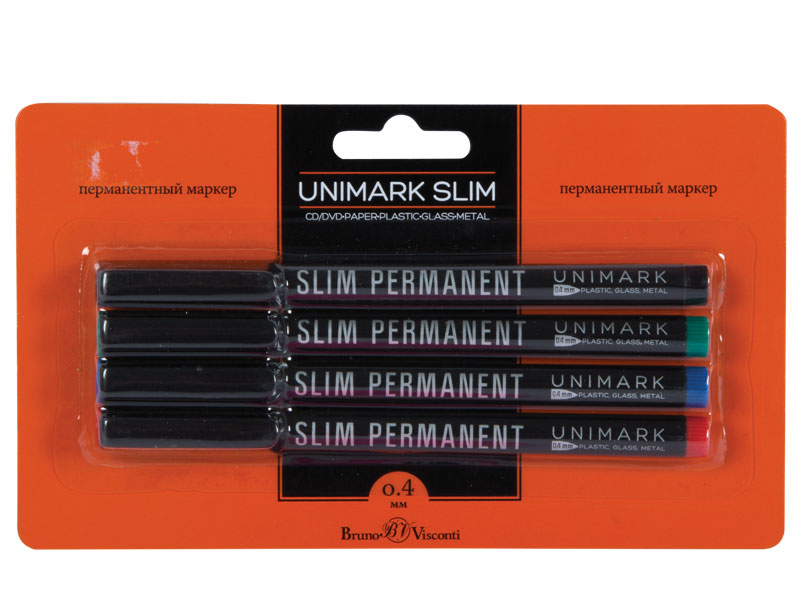 Маркеры перманентные д/CD-DVD в наборе - 4цв. 0.4мм. "Unimark Slim" (Bruno Visconti)