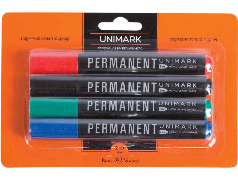 Маркеры перманентные в наборе - 4цв. 2.0мм. "UniMark" (Bruno Visconti)