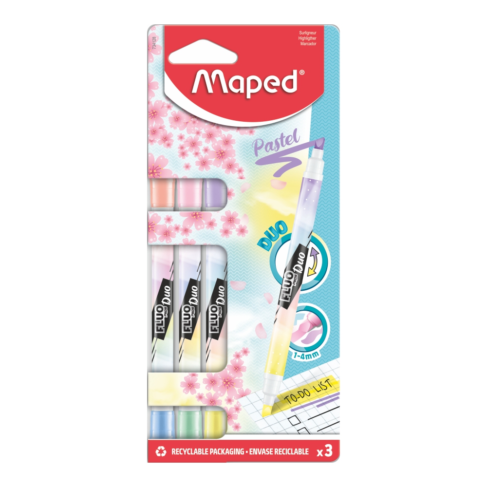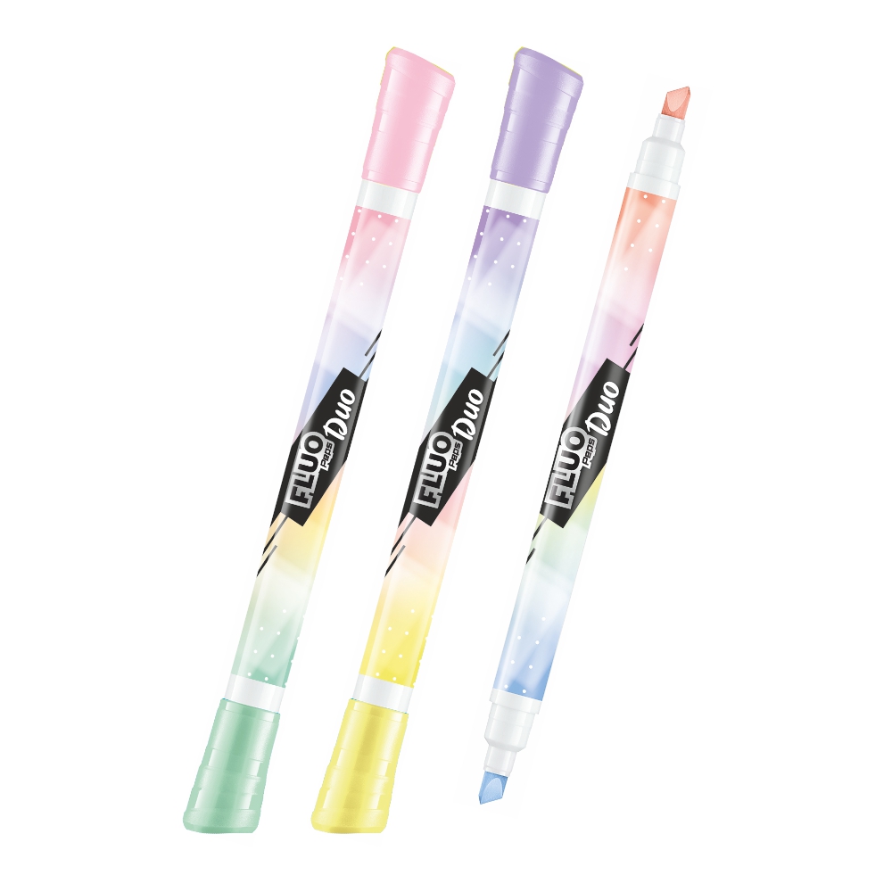 Перманентные маркеры «FLUO DUO» от бренда Maped в формате с двойным наконечником.