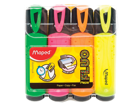 Маркеры текстовые в наборе - 4цв. неон. "Fluo Pep's" (Maped)