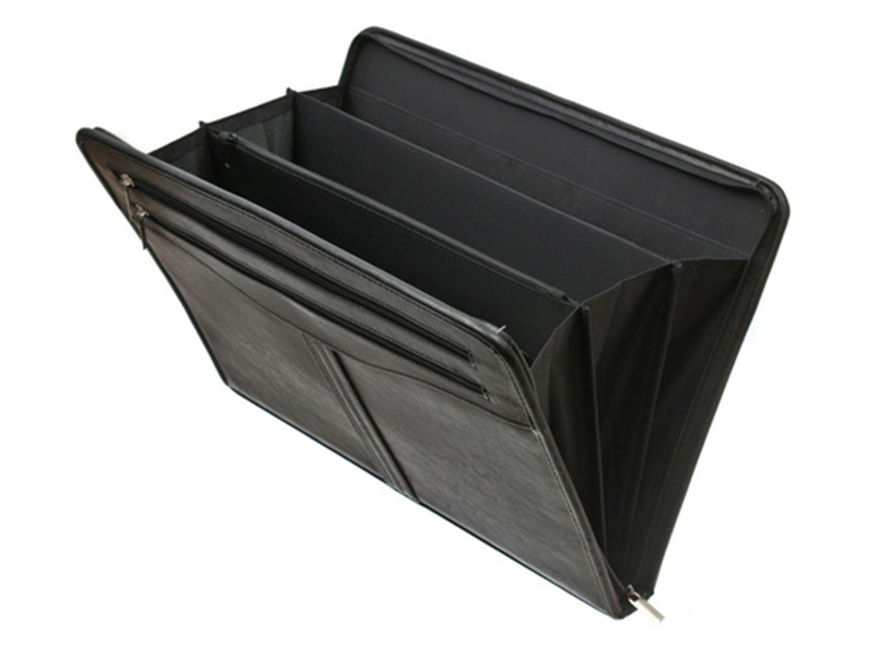 Деловая папка "Гамма" от компаний "Алекс" оснащена веерной системой карманов, оборудована выдвижными ручками, имеет 3 кармана на молнии, 2 из которых располагаются по обеим сторонам папки, в которые убираются ручки. Размер: 41х28.7 см. Цвет: черный.