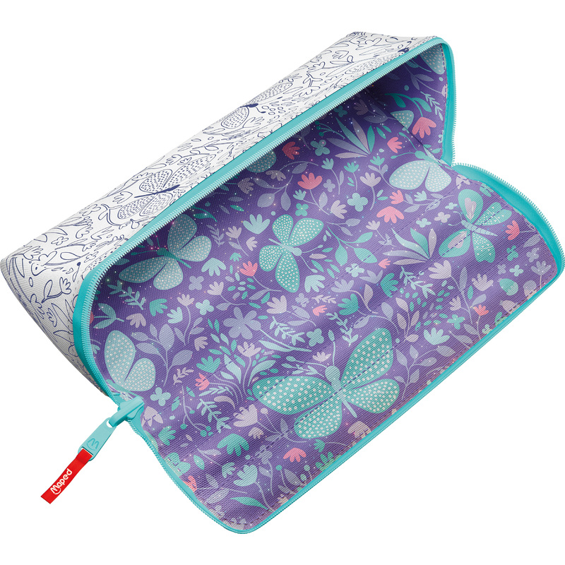 Пенал Maped "OPEN XXL BUTTERFLY" — это стильный и функциональный аксессуар для школьников, выполненный в ярком дизайне с изображением бабочек. Он сочетает в себе вместительность и оригинальный внешний вид, что делает его отличным выбором для девочек.