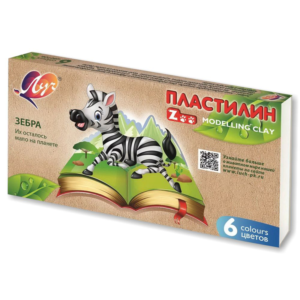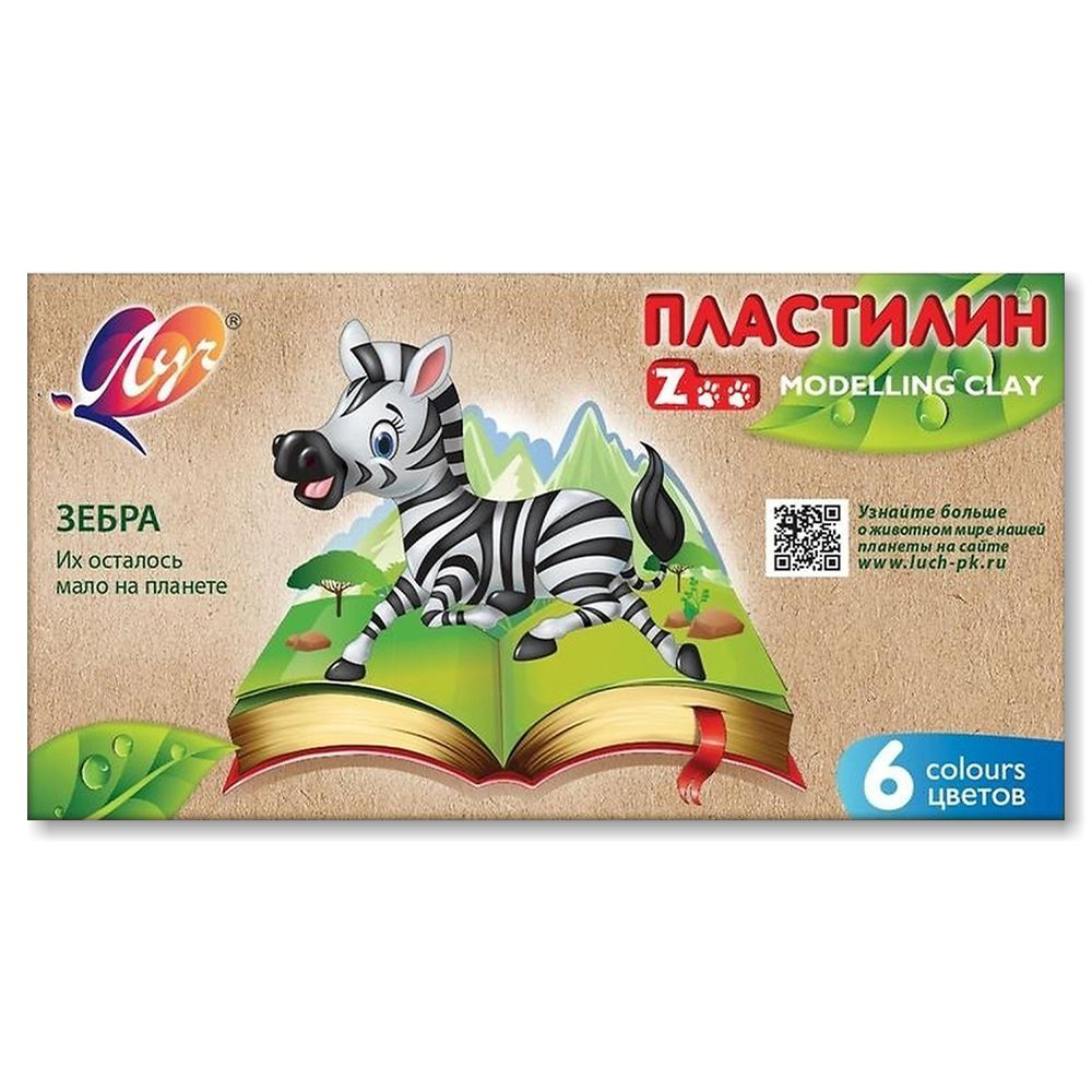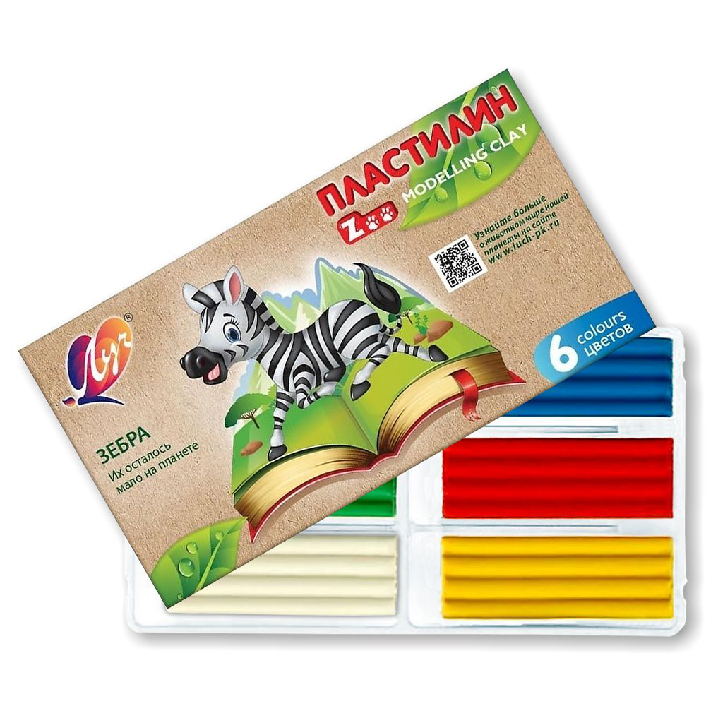 Пластилин - 6цв. "ZOO NEW" 90г. картон.уп. (Луч)