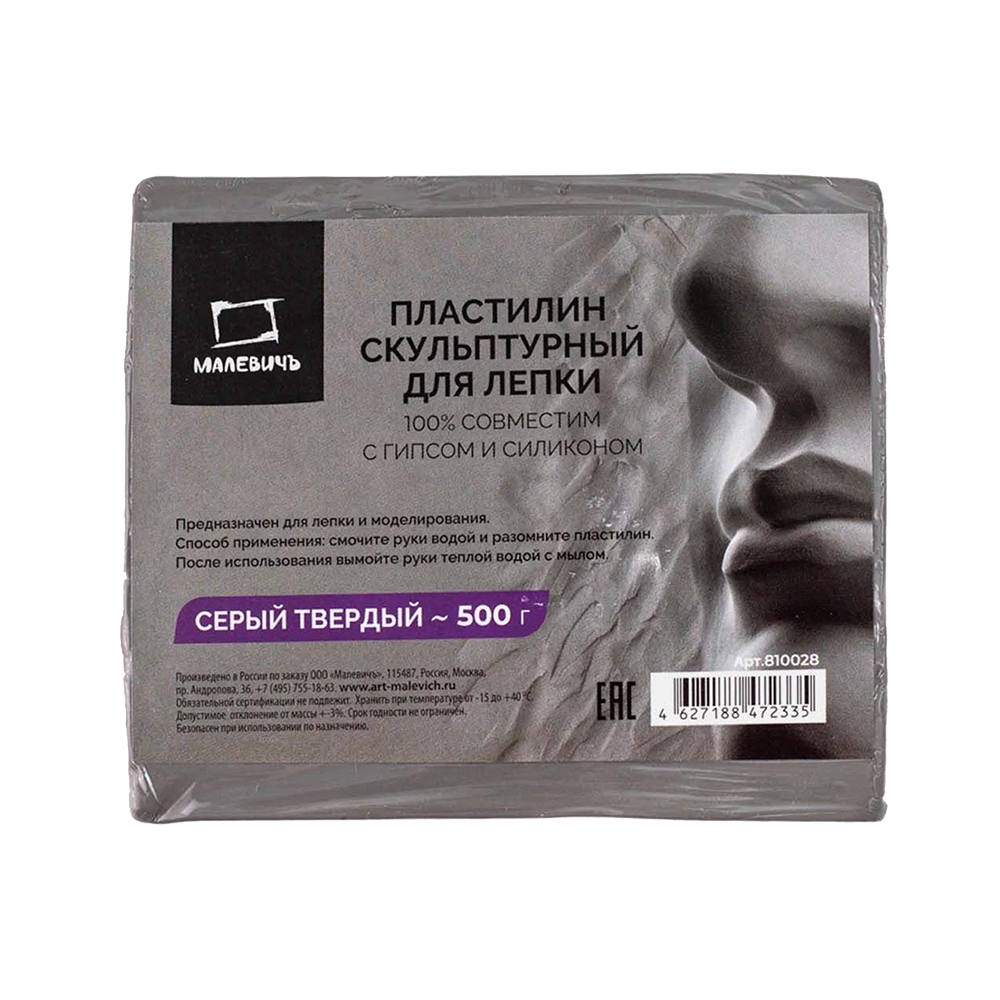 Пластилин скульптурный серый твердый от торговой марки «Малевичъ» предназначен для лепки и моделирования. 100% совместим с гипсом и силиконом. Способ применения: смочите руки с водой и разомните пластилин. После использования вымойти руки теплой водой с мылом. Вес: 500гр. Цвет: серый