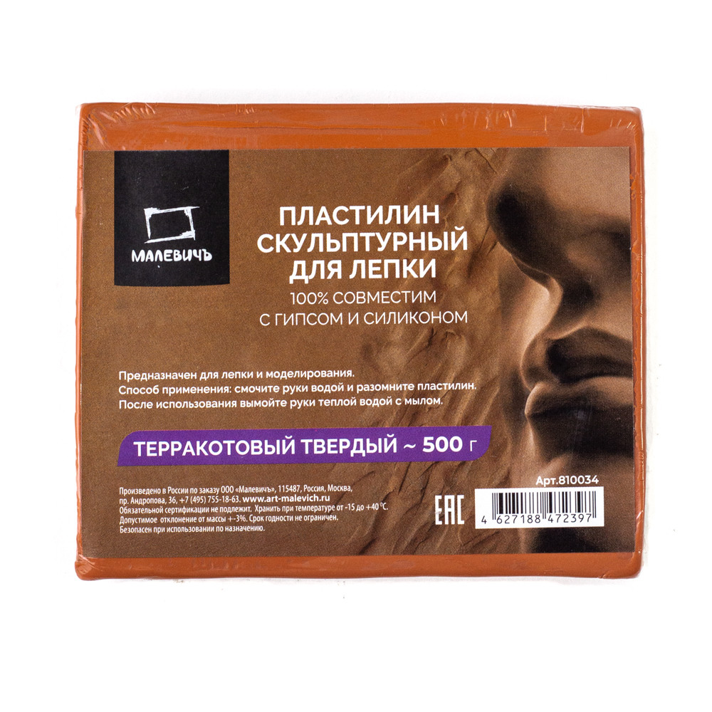Пластилин скульптурный твердый от торговой марки «Малевичъ» предназначен для лепки и моделирования. 100% совместим с гипсом и силиконом. Способ применения: смочите руки с водой и разомните пластилин. После использования вымойти руки теплой водой с мылом. Вес: 500гр. Цвет: терракотовый