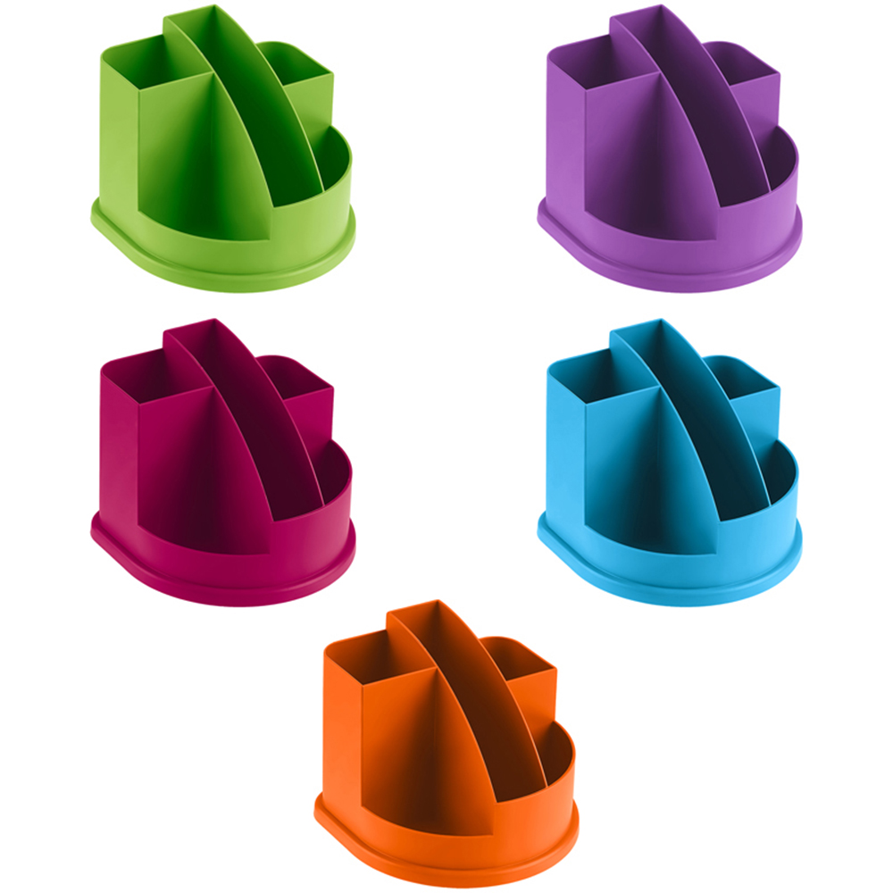 Изготовлена из прочного пластика и представлена в ассорти цветов, что делает рабочее место более живым и удобным для сортировки канцелярии. Подставка оснащена несколькими отделениями для ручек, карандашей, маркеров и других мелких предметов, обеспечивая быстрый доступ к необходимым инструментам.